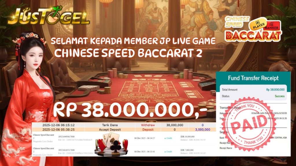 SELAMAT KEPADA MEMBER JP LIVE GAMES CHINESE SPEED BACCARAT 2 TOTAL RP 10.000.000,- LUNAS
