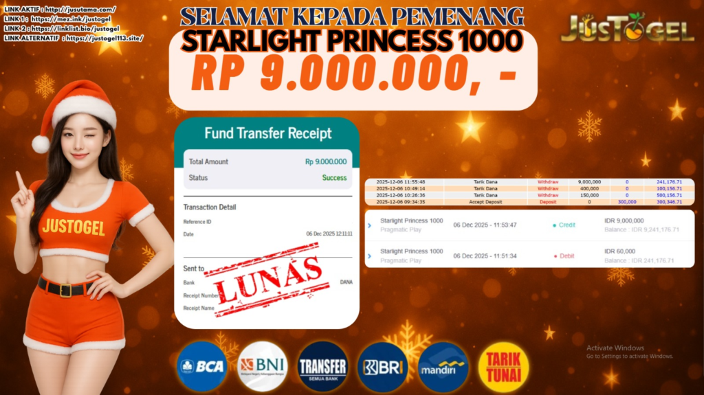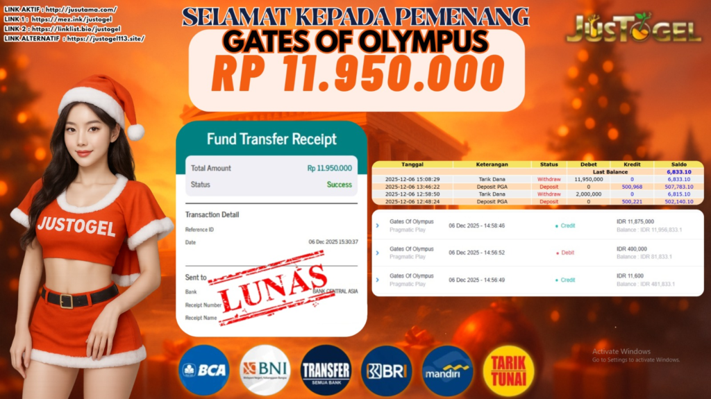Kami mengucapakan banyak Terima Kasih Kepada pemenang karena sudah mempercayakan kami sebagai Bandar Tepercaya yang membayar semua kemenangan member hingga lunas.