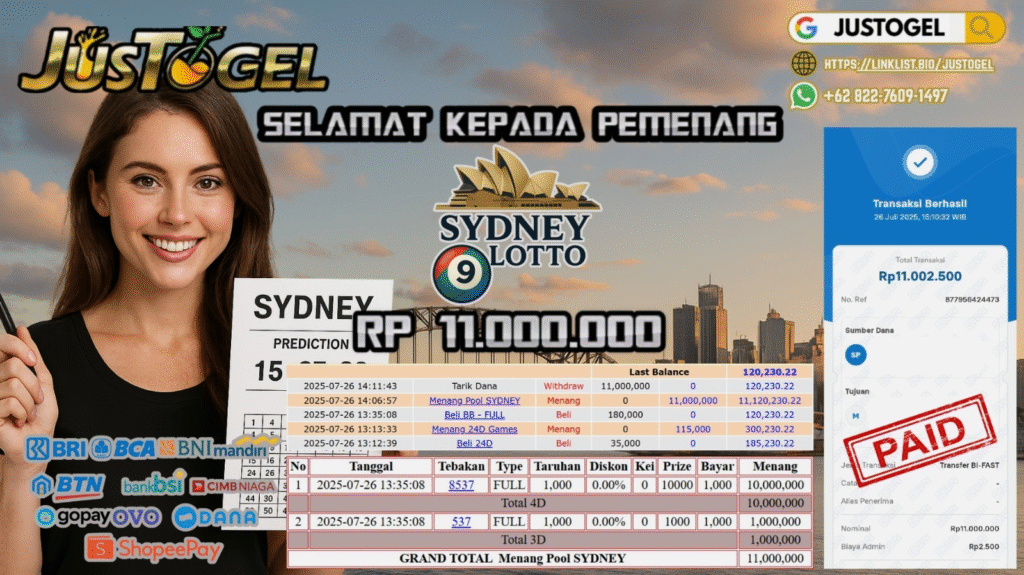 SELAMAT KEPADA MEMBER JP TOGEL SYDNEY TOTAL 11.000.000 LUNAS