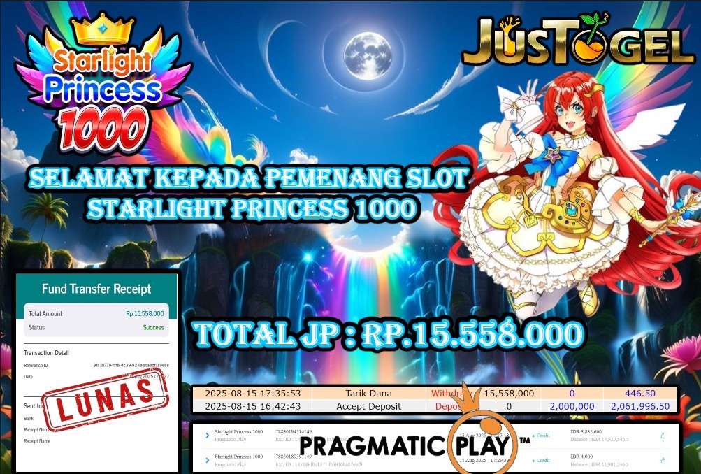 SELAMAT KEPADA MEMBER JP SLOT STARLIGHT PRINCESS 1000 TOTAL 15.558.000 LUNAS
