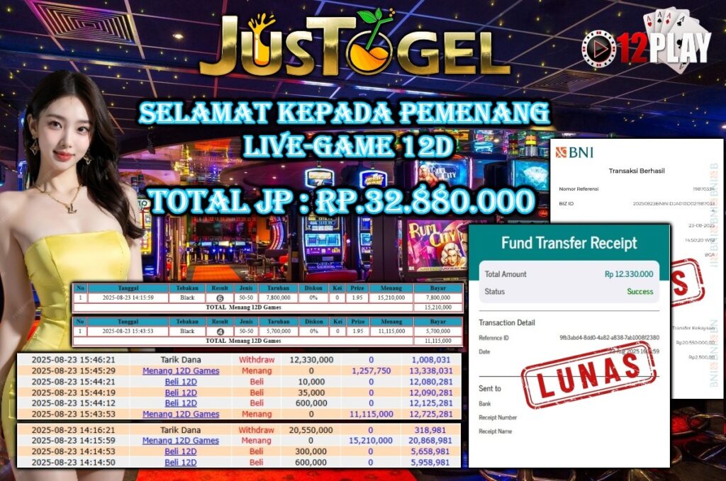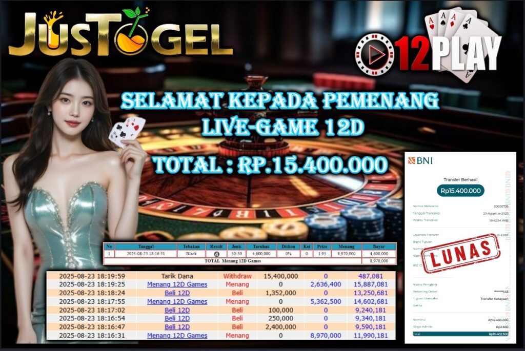 Selamat Kepada Pemenang Live Game 12D Total JP Rp. 15.400.000.- LUNAS
