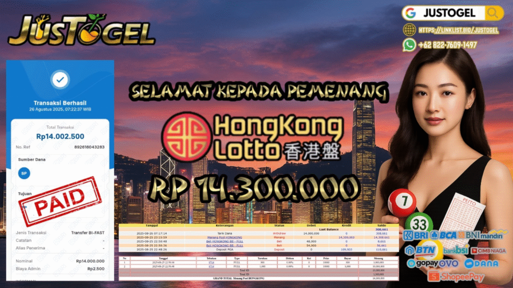 Selamat kepada User ID : GO***ERS Telah berhasil mendapatkan kemenangan besar pada Permainan JP TOGEL HONGKONG LOTTO Dengan kemenangan Sebesar Rp 14.300.000,- Setelah mengisi formulir withdraw dengan kurung waktu hanya 5-10 menit pihak JUSTOGEL sudah melakukan transfer kepada pemilik User ID dan dana sudah dapat di cairkan oleh pemenang. Bukti pembayaran yang kami berikan merupakan bukti pembayaran yang SAH / VALID yang langung di dapatkan melaui tanda transfer transaksi dari Bank yang di tuju.