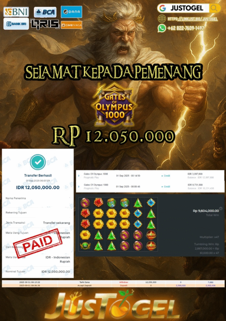 Kami mengucapakan banyak Terima Kasih Kepada pemenang karena sudah mempercayakan kami sebagai Bandar Tepercaya yang membayar semua kemenangan member hingga lunas.