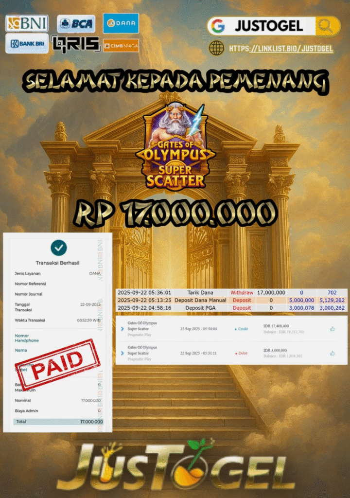 Kami mengucapakan banyak Terima Kasih Kepada pemenang karena sudah mempercayakan kami sebagai Bandar Tepercaya yang membayar semua kemenangan member hingga lunas.
