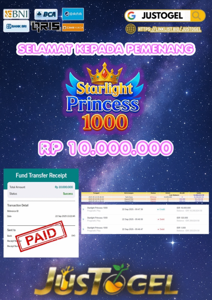 Selamat kepada User ID : C4P***3R Telah berhasil mendapatkan kemenangan besar pada Permainan JP TOGEL TOTO MACAU Dengan kemenangan Sebesar Rp 104.582.500,- Setelah mengisi formulir withdraw dengan kurung waktu hanya 5-10 menit pihak JUSTOGEL sudah melakukan transfer kepada pemilik User ID dan dana sudah dapat di cairkan oleh pemenang. Bukti pembayaran yang kami berikan merupakan bukti pembayaran yang SAH / VALID yang langung di dapatkan melaui tanda transfer transaksi dari Bank yang di tuju.