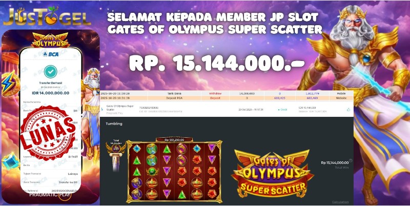 Selamat kepada User ID : JAW***RA Telah berhasil mendapatkan kemenangan besar pada Permainan JP SLOT GATES OF OLYMPUS SUPER SCATTER Dengan kemenangan Sebesar Rp 15.144.000,- Setelah mengisi formulir withdraw dengan kurung waktu hanya 5-10 menit pihak JUSTOGEL sudah melakukan transfer kepada pemilik User ID dan dana sudah dapat di cairkan oleh pemenang. Bukti pembayaran yang kami berikan merupakan bukti pembayaran yang SAH / VALID yang langung di dapatkan melaui tanda transfer transaksi dari Bank yang di tuju.