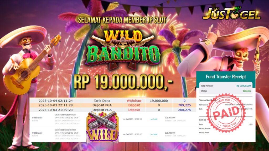 SELAMAT KEPADA MEMBER JP SLOT WILD BANDITO TOTAL Rp. 19.000.000.- LUNAS