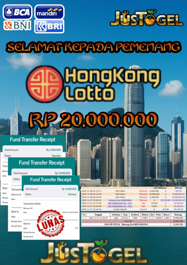 Selamat kepada User ID : NIN***UM Telah berhasil mendapatkan kemenangan besar pada Permainan JP TOGEL TOTOMACAU Dengan kemenangan Sebesar Rp 10.367.000,- Setelah mengisi formulir withdraw dengan kurung waktu hanya 5-10 menit pihak JUSTOGEL sudah melakukan transfer kepada pemilik User ID dan dana sudah dapat di cairkan oleh pemenang. Bukti pembayaran yang kami berikan merupakan bukti pembayaran yang SAH / VALID yang langung di dapatkan melaui tanda transfer transaksi dari Bank yang di tuju.