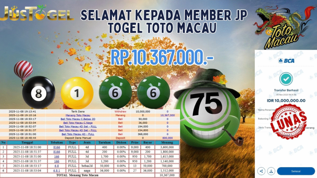 SELAMAT KEPADA MEMBER JP TOGEL TOTOMACAU TOTAL RP. 10.367.000.- LUNAS