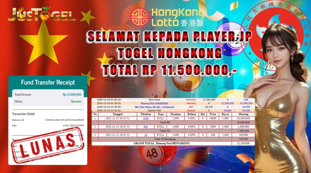 Selamat kepada User ID : BEL***23 Telah berhasil mendapatkan kemenangan besar pada Permainan JP TOGEL HONGKONG LOTTO Dengan kemenangan Sebesar Rp 11.500.000,- Setelah mengisi formulir withdraw dengan kurung waktu hanya 5-10 menit pihak JUSTOGEL sudah melakukan transfer kepada pemilik User ID dan dana sudah dapat di cairkan oleh pemenang. Bukti pembayaran yang kami berikan merupakan bukti pembayaran yang SAH / VALID yang langung di dapatkan melaui tanda transfer transaksi dari Bank yang di tuju.