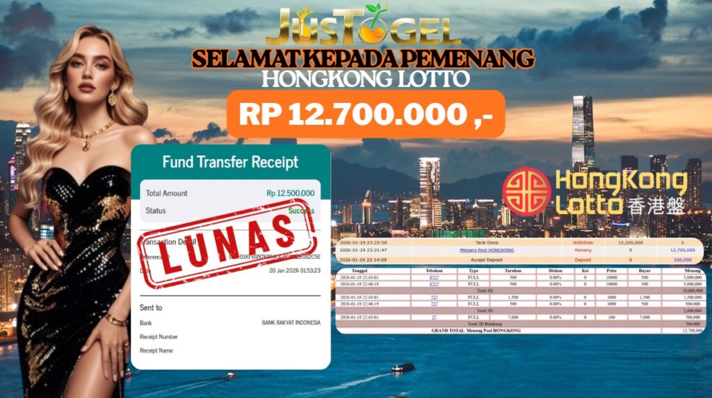 Selamat kepada User ID : KUR***YMO69 Telah berhasil mendapatkan kemenangan besar pada Permainan JP TOGEL HONGKONG LOTTO Dengan kemenangan Sebesar Rp. 12.700.000 ,- Setelah mengisi formulir withdraw dengan kurung waktu hanya 5-10 menit pihak JUSTOGEL sudah melakukan transfer kepada pemilik User ID dan dana sudah dapat di cairkan oleh pemenang. Bukti pembayaran yang kami berikan merupakan bukti pembayaran yang SAH / VALID yang langung di dapatkan melaui tanda transfer transaksi dari Bank yang di tuju.