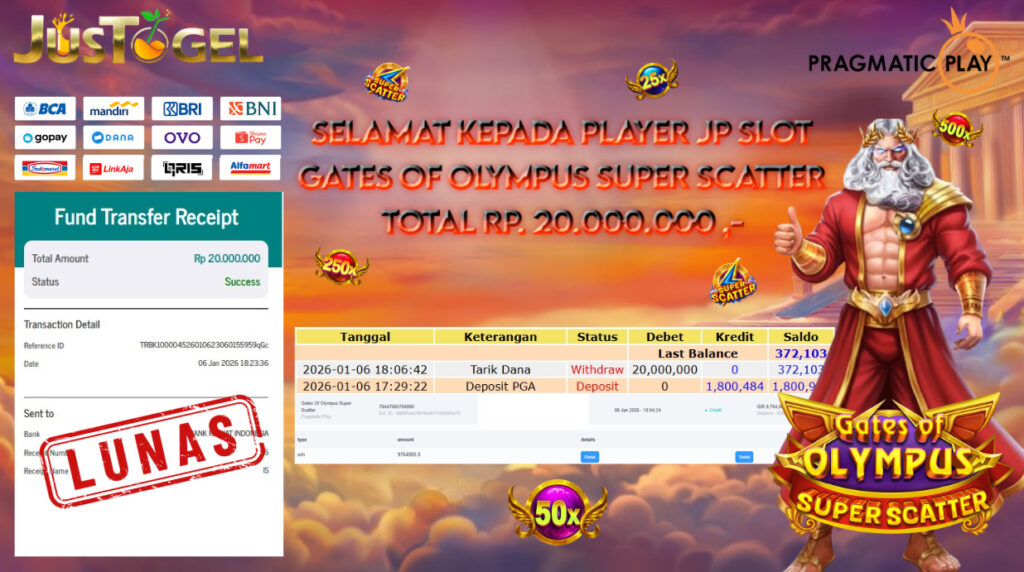 Kami mengucapakan banyak Terima Kasih Kepada pemenang karena sudah mempercayakan kami sebagai Bandar Tepercaya yang membayar semua kemenangan member hingga lunas.
