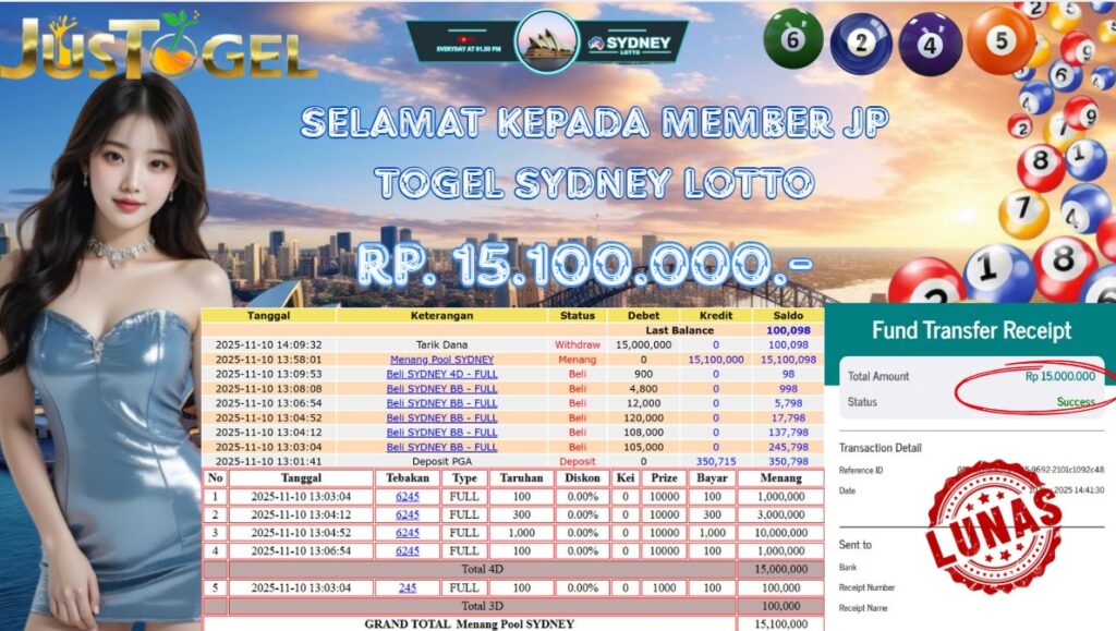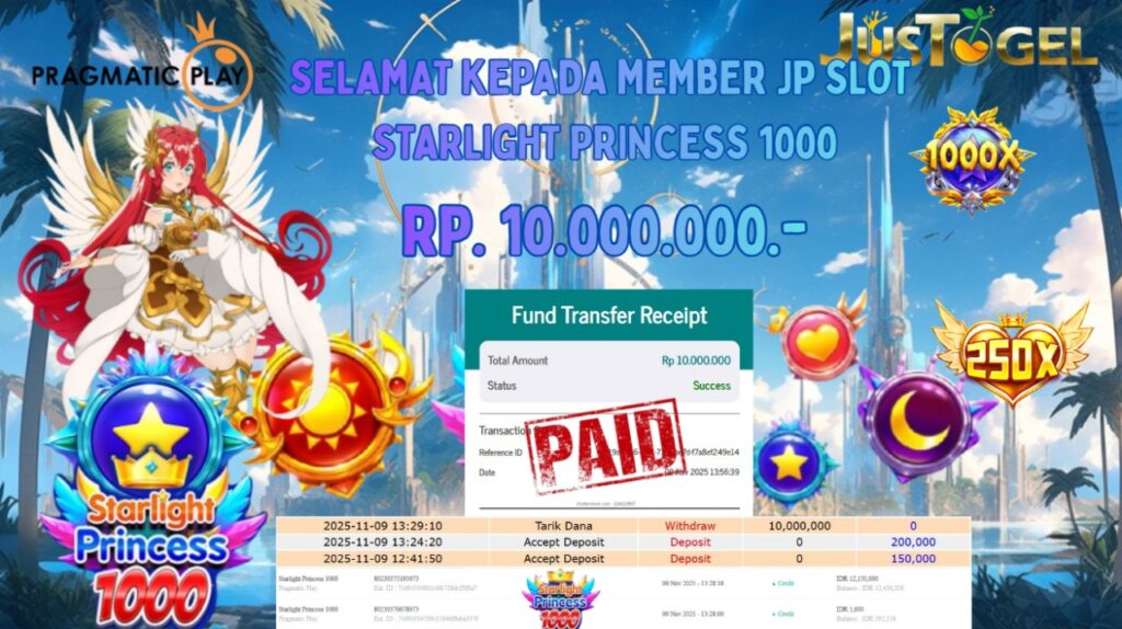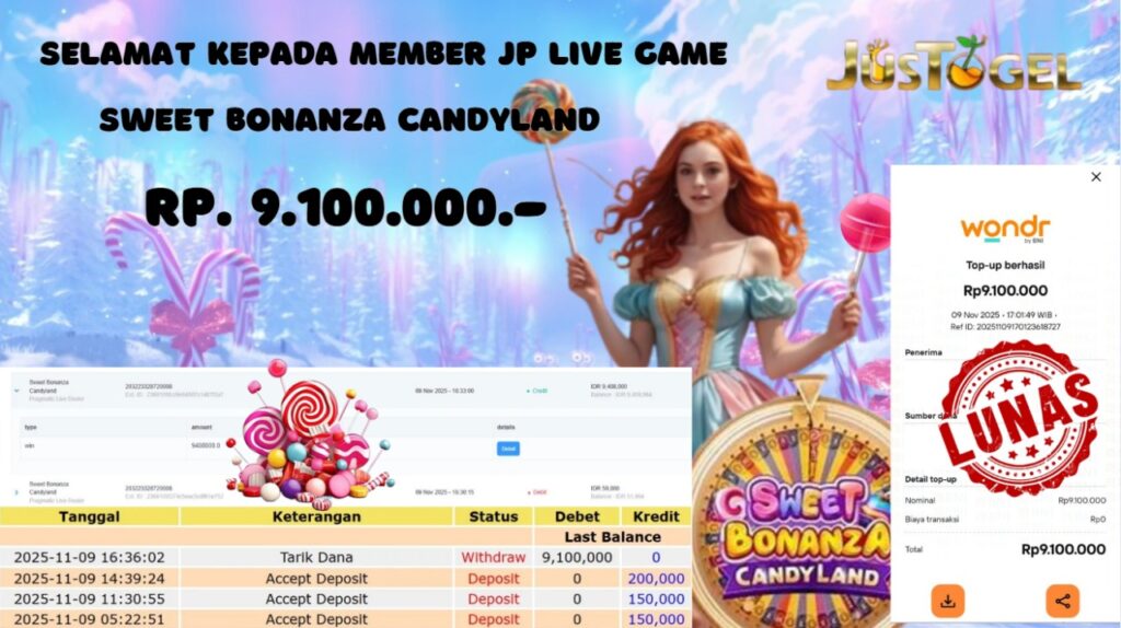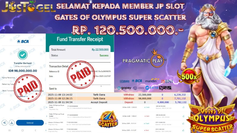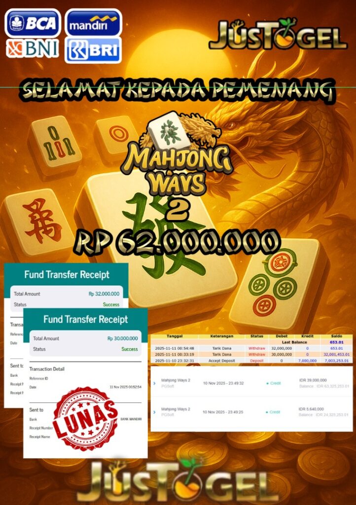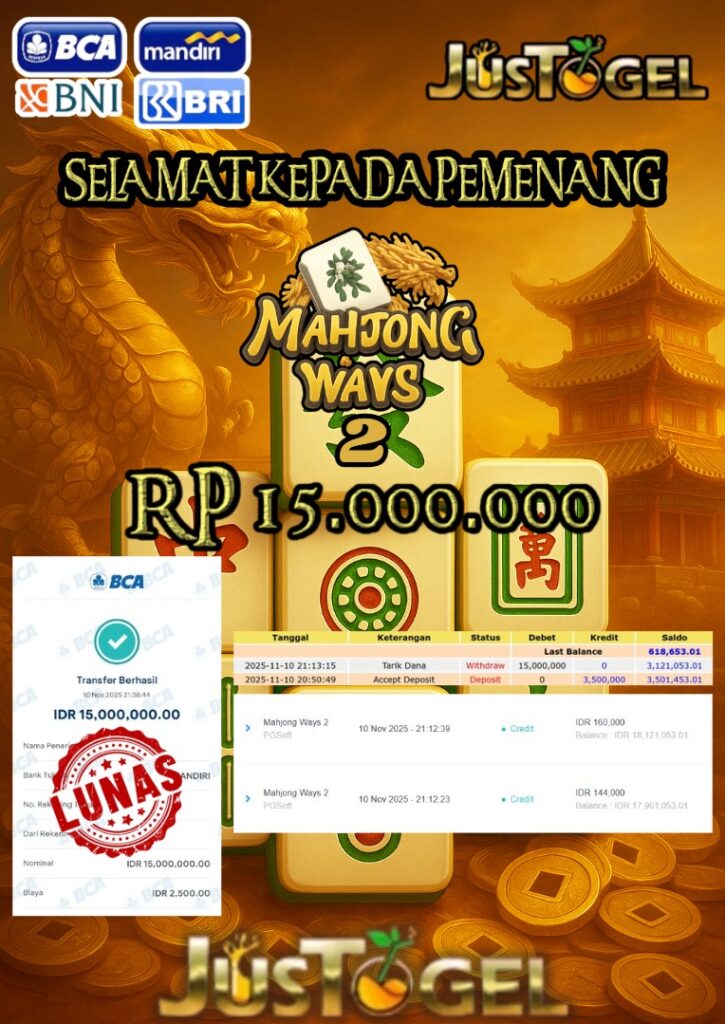Selamat kepada User ID : FER***DO55 Telah berhasil mendapatkan kemenangan besar pada Permainan JP SLOT WISDOM OF ATHENA 1000 & GATES OF OLYMPUS Dengan kemenangan Sebesar Rp 60.000.000,- Setelah mengisi formulir withdraw dengan kurung waktu hanya 5-10 menit pihak JUSTOGEL sudah melakukan transfer kepada pemilik User ID dan dana sudah dapat di cairkan oleh pemenang. Bukti pembayaran yang kami berikan merupakan bukti pembayaran yang SAH / VALID yang langung di dapatkan melaui tanda transfer transaksi dari Bank yang di tuju.