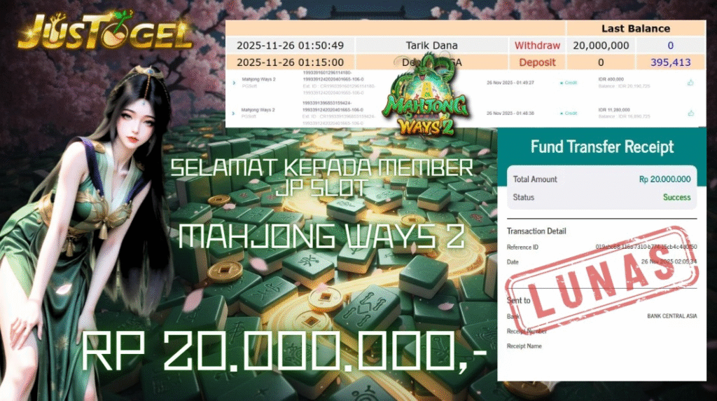 Selamat kepada User ID : ARQ***M Telah berhasil mendapatkan kemenangan besar pada Permainan JP SLOT WILD BOUNTY SHOWDOWN Dengan kemenangan Sebesar Rp 20.000.000,- Setelah mengisi formulir withdraw dengan kurung waktu hanya 5-10 menit pihak JUSTOGEL sudah melakukan transfer kepada pemilik User ID dan dana sudah dapat di cairkan oleh pemenang. Bukti pembayaran yang kami berikan merupakan bukti pembayaran yang SAH / VALID yang langung di dapatkan melaui tanda transfer transaksi dari Bank yang di tuju.