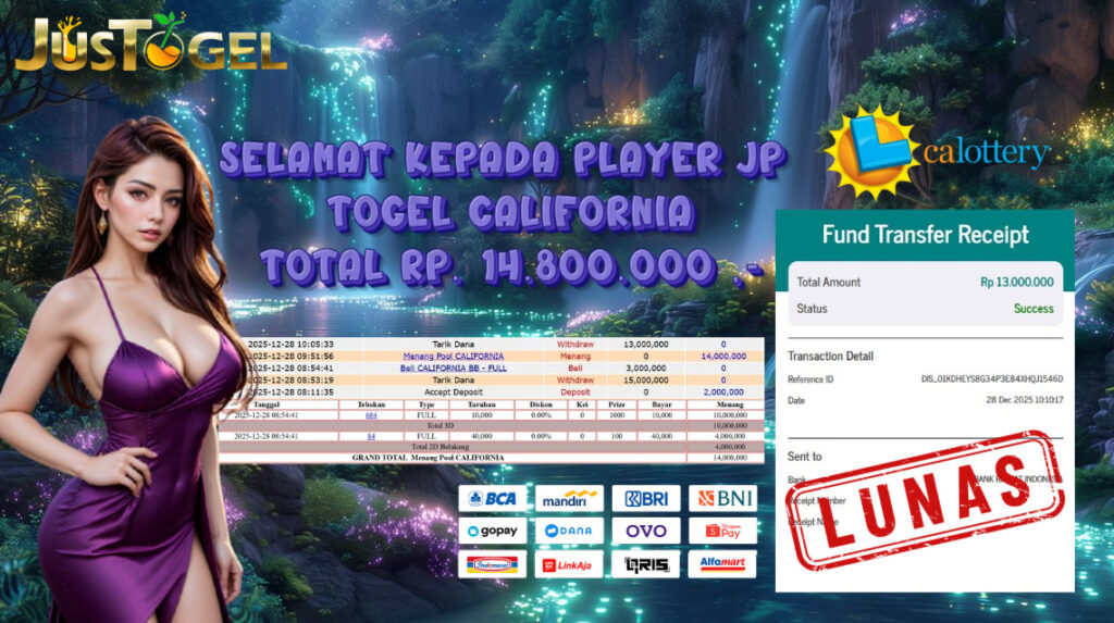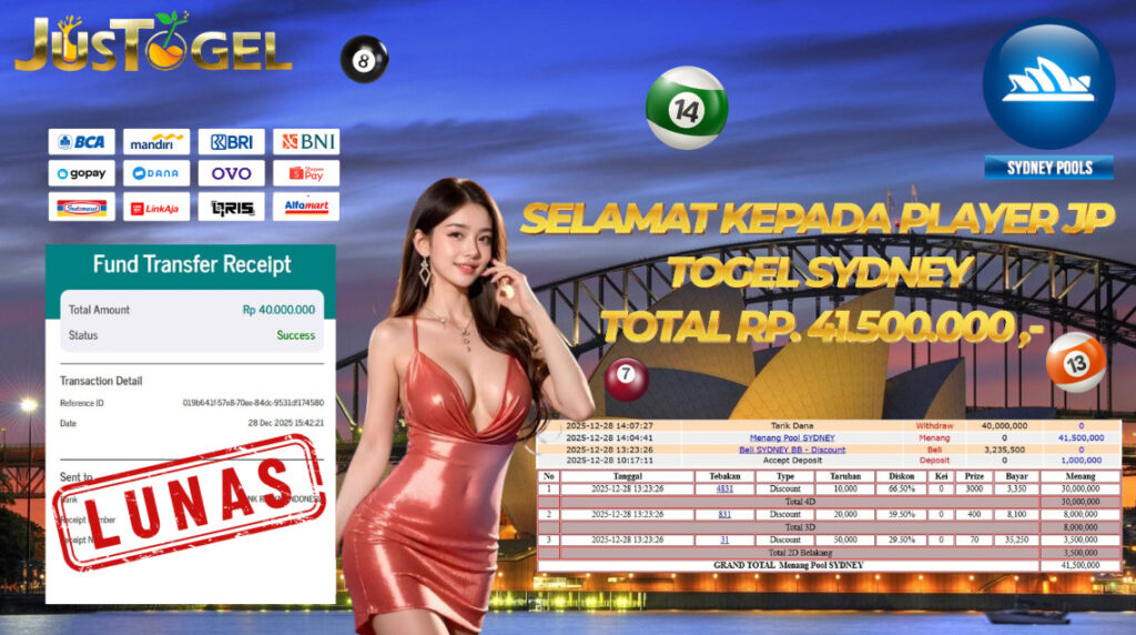 Selamat kepada User ID : PUJ***TUTI Telah berhasil mendapatkan kemenangan besar pada Permainan JP TOGEL TOTO MACAU 5D Dengan kemenangan Sebesar Rp 10.045.000,- Setelah mengisi formulir withdraw dengan kurung waktu hanya 5-10 menit pihak JUSTOGEL sudah melakukan transfer kepada pemilik User ID dan dana sudah dapat di cairkan oleh pemenang. Bukti pembayaran yang kami berikan merupakan bukti pembayaran yang SAH / VALID yang langung di dapatkan melaui tanda transfer transaksi dari Bank yang di tuju.