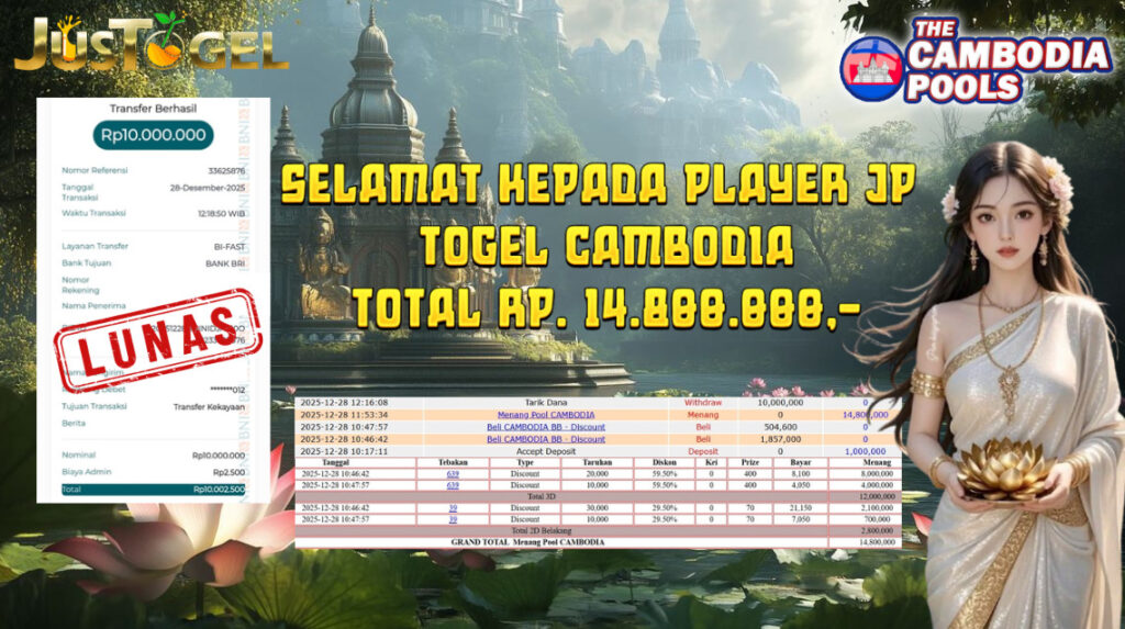 SELAMAT KEPADA MEMBER JP TOGEL TOTO MACAU 5D TOTAL RP 10.045.000,- LUNAS