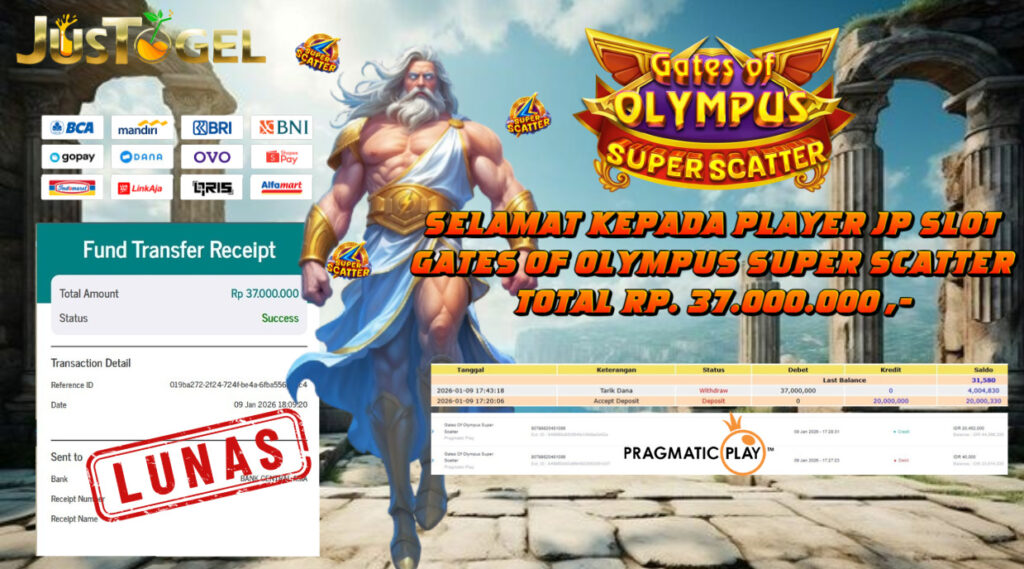 SELAMAT KEPADA MEMBER JP SLOT GATES OF OLYMPUS SUPER SCATTER TOTAL RP 37.000.000,- LUNAS