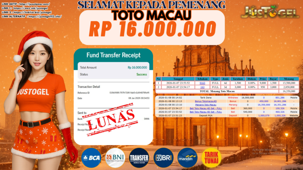 Masih ragu dengan JUSTOGEL bos ? Di mana bandar togel online sekarang yang terpercaya seperti JUSTOGEL? Bandar yang mengirimkan kemenangan member tanpa bertele tele. Jadi. tidak perlu khawatir pada situs JUSTOGEL karena kemenangan anda berapapun akan dibayarakan hingga lunas kepada pemenang.