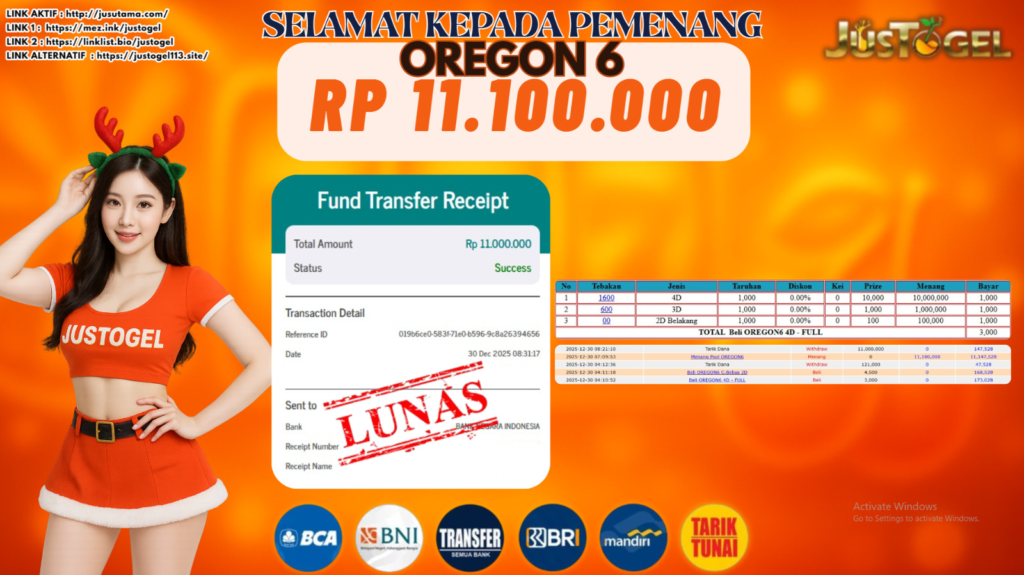 Selamat kepada User ID : KUN***AKUN Telah berhasil mendapatkan kemenangan besar pada Permainan JP TOGEL FLORIDA MID Dengan kemenangan Sebesar Rp 12.500.000,- Setelah mengisi formulir withdraw dengan kurung waktu hanya 5-10 menit pihak JUSTOGEL sudah melakukan transfer kepada pemilik User ID dan dana sudah dapat di cairkan oleh pemenang. Bukti pembayaran yang kami berikan merupakan bukti pembayaran yang SAH / VALID yang langung di dapatkan melaui tanda transfer transaksi dari Bank yang di tuju.