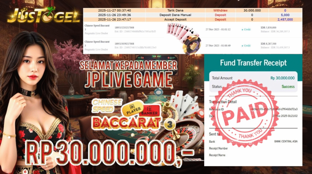 Selamat kepada User ID : MU***AMAD Telah berhasil mendapatkan kemenangan besar pada Permainan JP SLOT STARLIGHT PRINCESS 1000 Dengan kemenangan Sebesar Rp 10.000.000,- Setelah mengisi formulir withdraw dengan kurung waktu hanya 5-10 menit pihak JUSTOGEL sudah melakukan transfer kepada pemilik User ID dan dana sudah dapat di cairkan oleh pemenang. Bukti pembayaran yang kami berikan merupakan bukti pembayaran yang SAH / VALID yang langung di dapatkan melaui tanda transfer transaksi dari Bank yang di tuju.