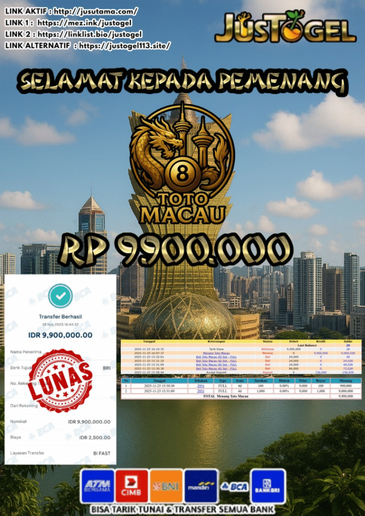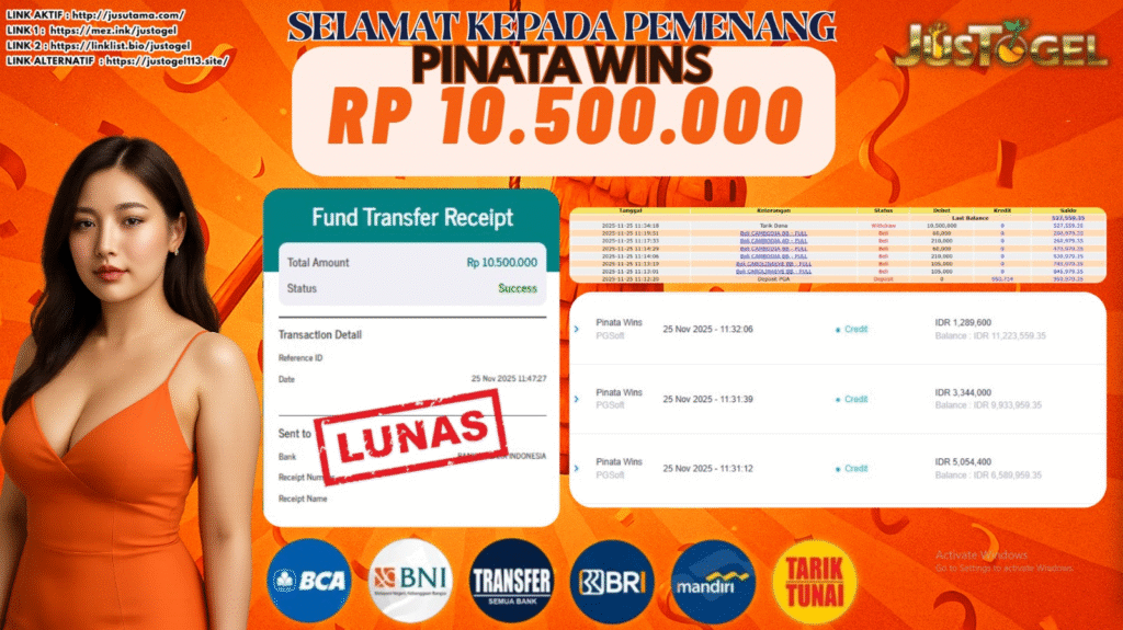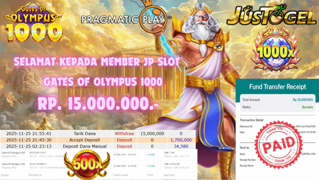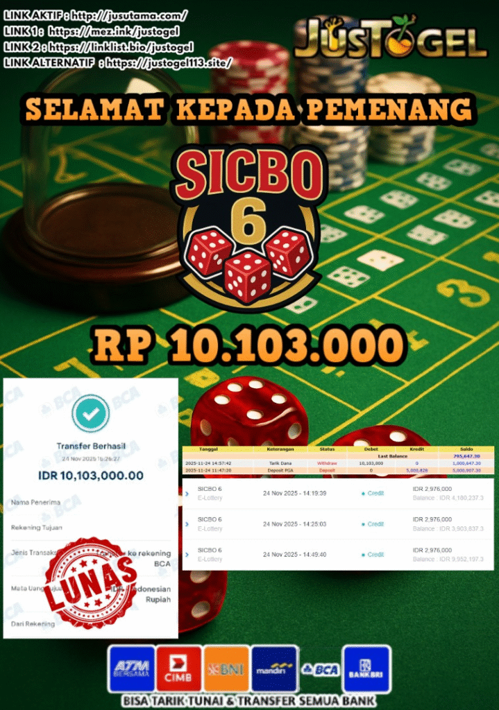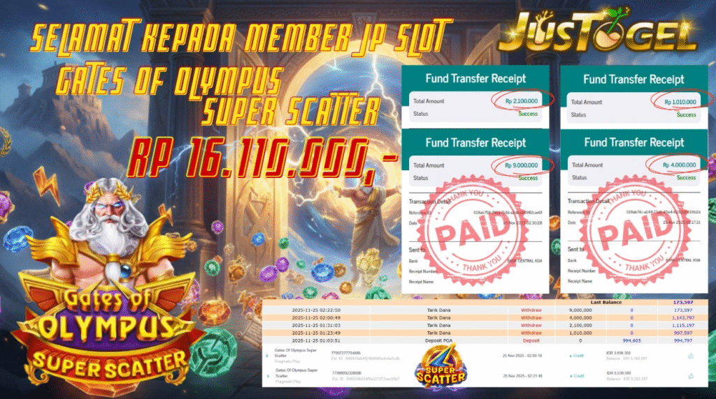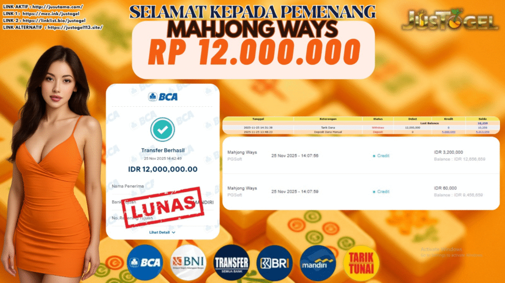 Selamat kepada User ID : JEJE***JP Telah berhasil mendapatkan kemenangan besar pada Permainan JP SLOT MAHJONG WAYS 2 Dengan kemenangan Sebesar Rp 20.000.000,- Setelah mengisi formulir withdraw dengan kurung waktu hanya 5-10 menit pihak JUSTOGEL sudah melakukan transfer kepada pemilik User ID dan dana sudah dapat di cairkan oleh pemenang. Bukti pembayaran yang kami berikan merupakan bukti pembayaran yang SAH / VALID yang langung di dapatkan melaui tanda transfer transaksi dari Bank yang di tuju.